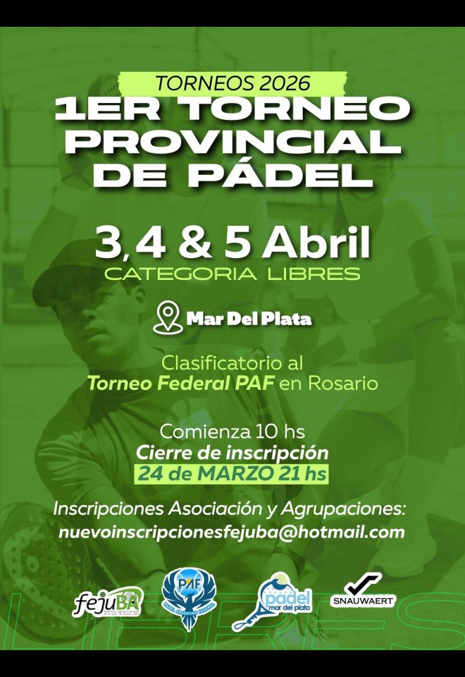 »» Evento: 1ER. PROVINCIAL LIBRES - FEJUBA 2026 - »» Localidad: Mar del Plata »» Fechas: 03/04/2026 al 05/04/2026
